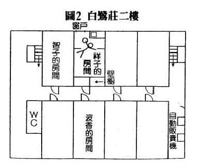 “第二天早晨,沙都子去看时,门也是锁着。她向管理员借了万能钥匙去打开,结果发现祥子已经死了。问题是,那天晚上去找祥子的,其实不只波香一人,一个住在祥子隔壁的三年级女生,曾在波香之前去找过祥子。据她说,当她去敲门时,因为发觉门没锁,就打开门进去,可是房里没有开灯,一片黑暗。然而,当沙都子发现尸体时,里面的日光灯却开着!”